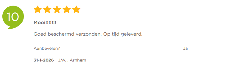 Gaat het om maatwerk of een speciale bestelling? Dan kan de levertijd afwijken. In dat geval nemen we persoonlijk contact met je op. Zodra je bestelling is verzonden ontvang je een Track en Trace code, zodat je jouw pakket kunt volgen.