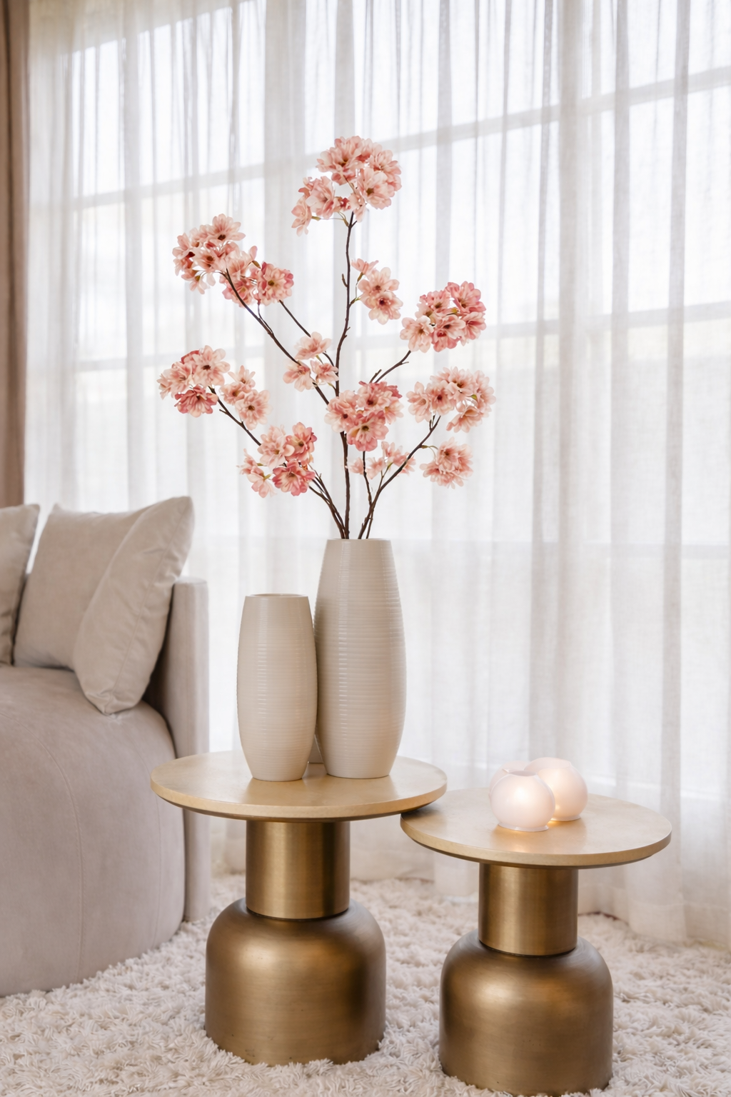 De Cherry bloesemtak perzik is een luxe zijden kunstbloem met een zachte perzikkleurige bloesem die warmte en verfijning toevoegt aan je interieur. Perfect voor hoge vazen of als onderdeel van een stijlvol boeket. Geniet van blijvende bloei zonder onderhoud en combineer eenvoudig met andere Silk-ka kunstbloemen en kunstplanten. Ontdek de collectie online of bezoek onze winkel voor persoonlijk advies.
