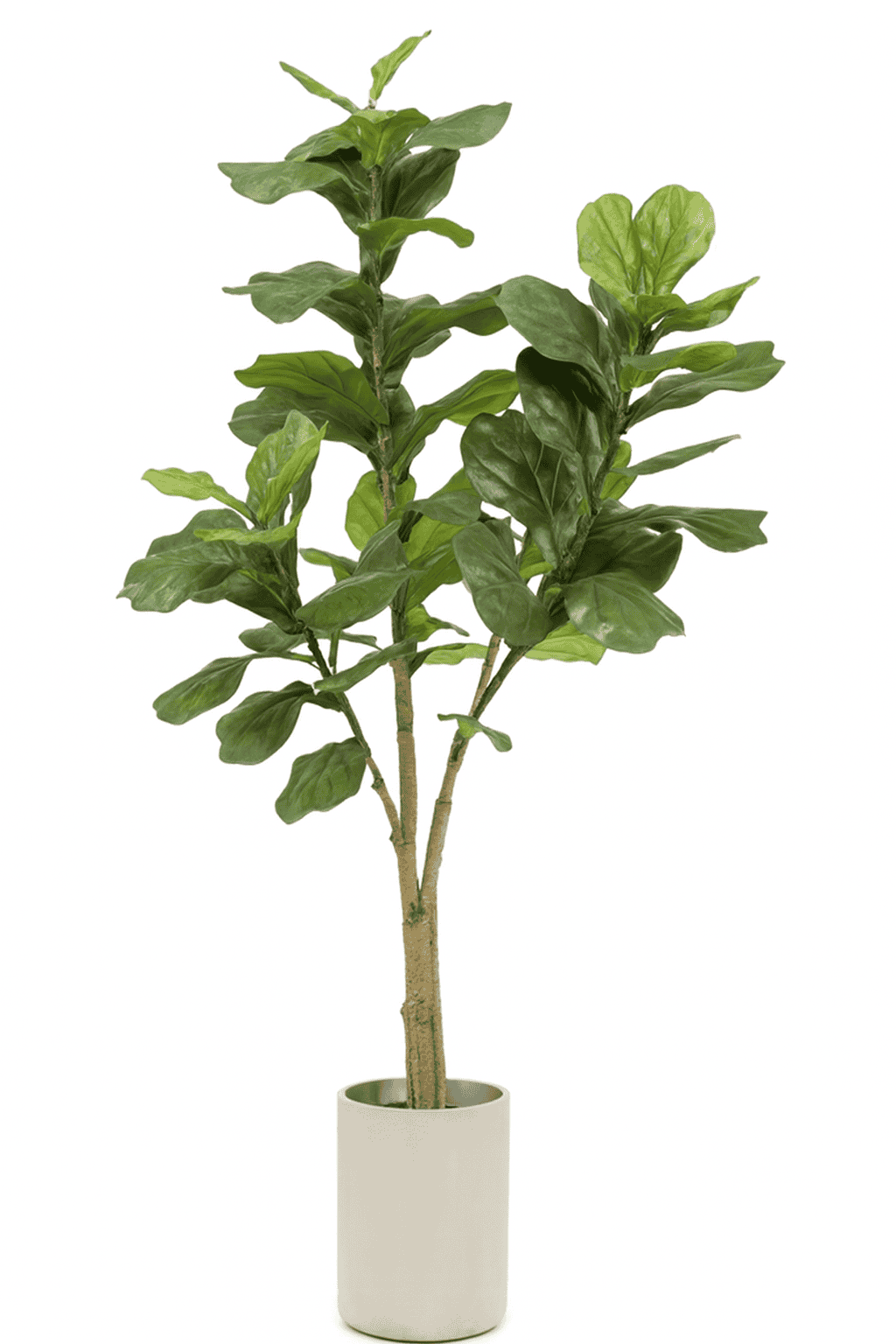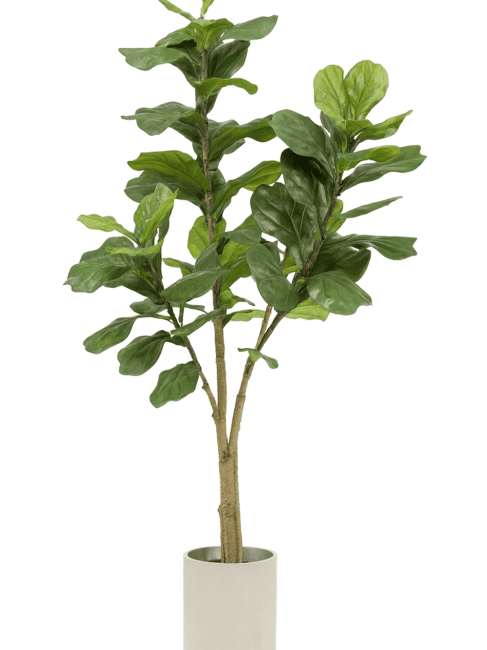 De Ficus Lyrata kunstboom kunstplant brengt direct structuur en rust in je interieur. Het iconische blad met zijn brede, vioolvormige contour is al jaren een vaste waarde binnen luxe woonconcepten. In deze kunstuitvoering blijft de plant constant van kwaliteit, zonder afhankelijk te zijn van licht, water of verzorgingsritme. De vorm, bladstand en opbouw van de vertakkingen zijn nauwkeurig uitgewerkt zodat de plant naadloos aansluit bij een interieur waarin balans, eenvoud en hoogwaardige afwerking de basis vormen. Je gebruikt deze kunstboom als stabiel element in een ruimte waar je werkt met rustige materialen, een helder lijnenspel en een consistente sfeer. De plant verbindt meubels en accessoires op een vanzelfsprekende manier en versterkt de indeling zonder zich op te dringen.