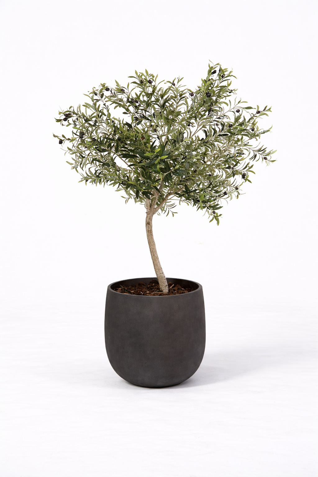 In moderne woonruimtes brengt de kunst olijfboom met olijf structuur. Strakke lijnen, rustige kleuren en hoogwaardige materialen krijgen meer spanning door het verfijnde blad en de open vertakking. De olijven zijn subtiel aanwezig en versterken het natuurlijke beeld, zonder de aandacht op te eisen. In minimalistische interieurs werkt de boom als tegenwicht voor harde materialen. In warmere interieurs ondersteunt hij de sfeer, zonder romantisch of mediterraan te worden.