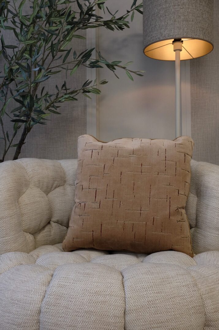Ook buiten maken de kussens indruk. Als stijlvolle buitenkussens zijn ze ideaal voor een luxe loungehoek aan het zwembad, een overdekt terras of een patio met natuurlijke materialen. De verfijnde uitstraling zorgt voor een harmonieuze overgang tussen binnen en buiten – perfect voor een villa met een high-end look.