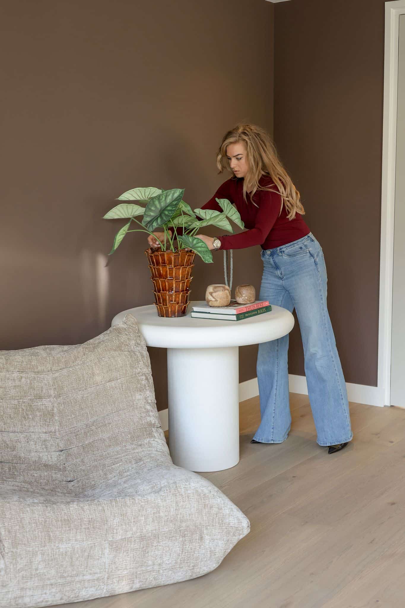 De winkelervaring laat zien hoe kunstplanten samenwerken binnen grotere interieurs. Je ontdekt hoe hoogteverschillen de ruimte openen, hoe bladstructuren diepte toevoegen en hoe een plant zoals de Alocasia een kamer afrondt. Dit maakt het makkelijker om te bepalen waar de plant binnen jouw eigen interieur het beste tot zijn recht komt.