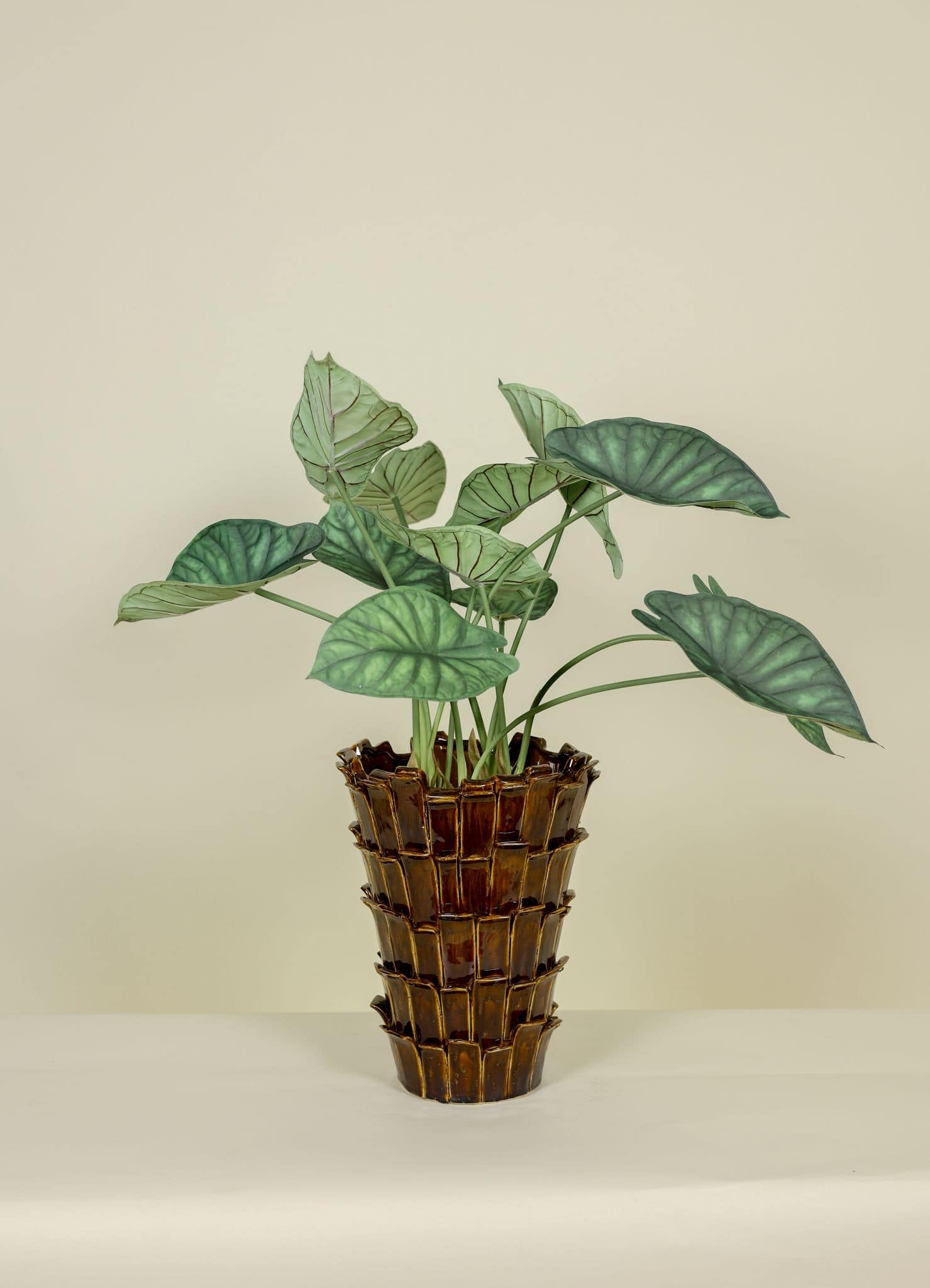 Omdat kunstplanten geen pollen verspreiden, blijft de woning allergievriendelijk. De plant behoudt zijn kleur en vorm zonder bladval, waardoor je interieur verzorgd blijft, ook wanneer je weinig tijd hebt voor onderhoud. De Alocasia zorgt voor een constante groene basis die interieurs stabiliteit en rust geeft.