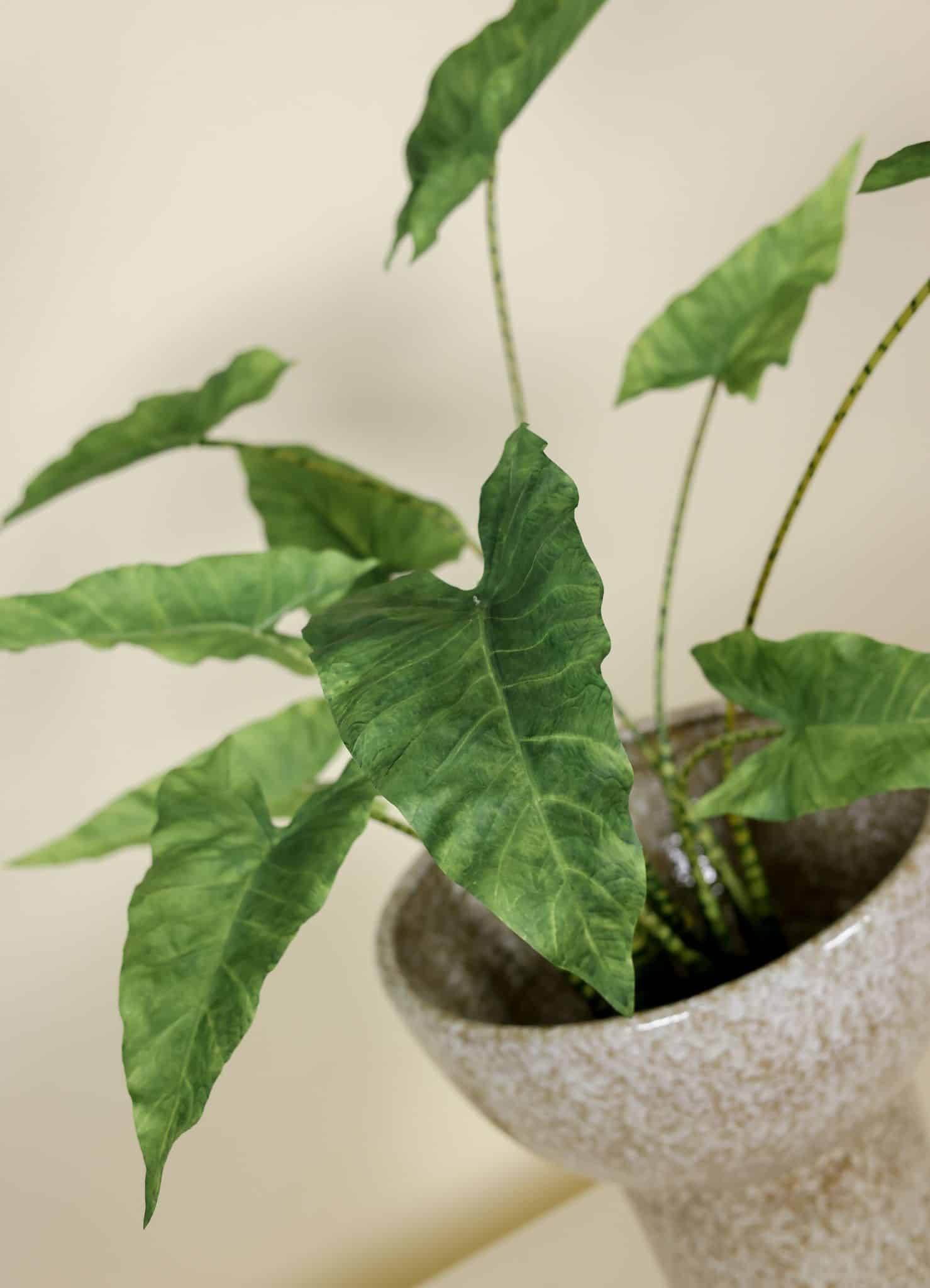 De Kunstplant Alocasia Zebrina 85cm geeft direct karakter aan je interieur. De plant blijft altijd mooi, zonder water, zonder licht en zonder onderhoud. De natuurgetrouwe vorm past bij elke woonstijl en vormt een sterke basis binnen moderne en luxe interieurs. Ideaal voor wie sfeer, rust en duurzaamheid wil combineren. Bezoek onze showroom en ervaar zelf hoe deze Alocasia jouw interieur compleet maakt.