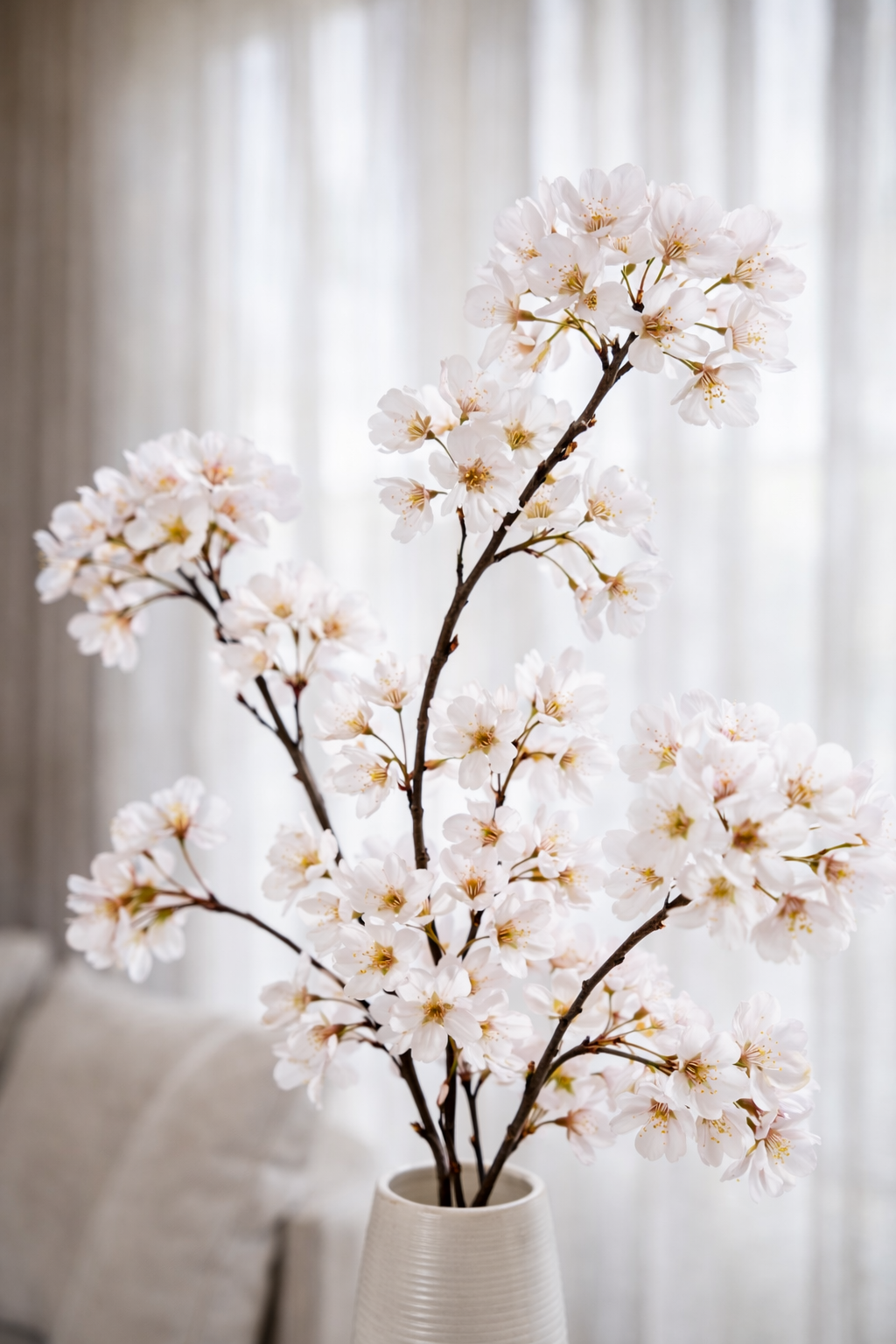 De bloesems zijn zorgvuldig vormgegeven en hebben een natuurlijke kleurovergang. De tak laat zich eenvoudig modelleren, waardoor je zelf de vorm bepaalt. Plaats één enkele tak in een hoge vaas voor een krachtig statement of combineer meerdere takken voor een voller boeket met volume. In een modern interieur zorgt deze bloesemtak voor balans tussen strakke lijnen en zachte vormen. In een klassiek interieur versterkt hij juist de gelaagdheid en diepte.