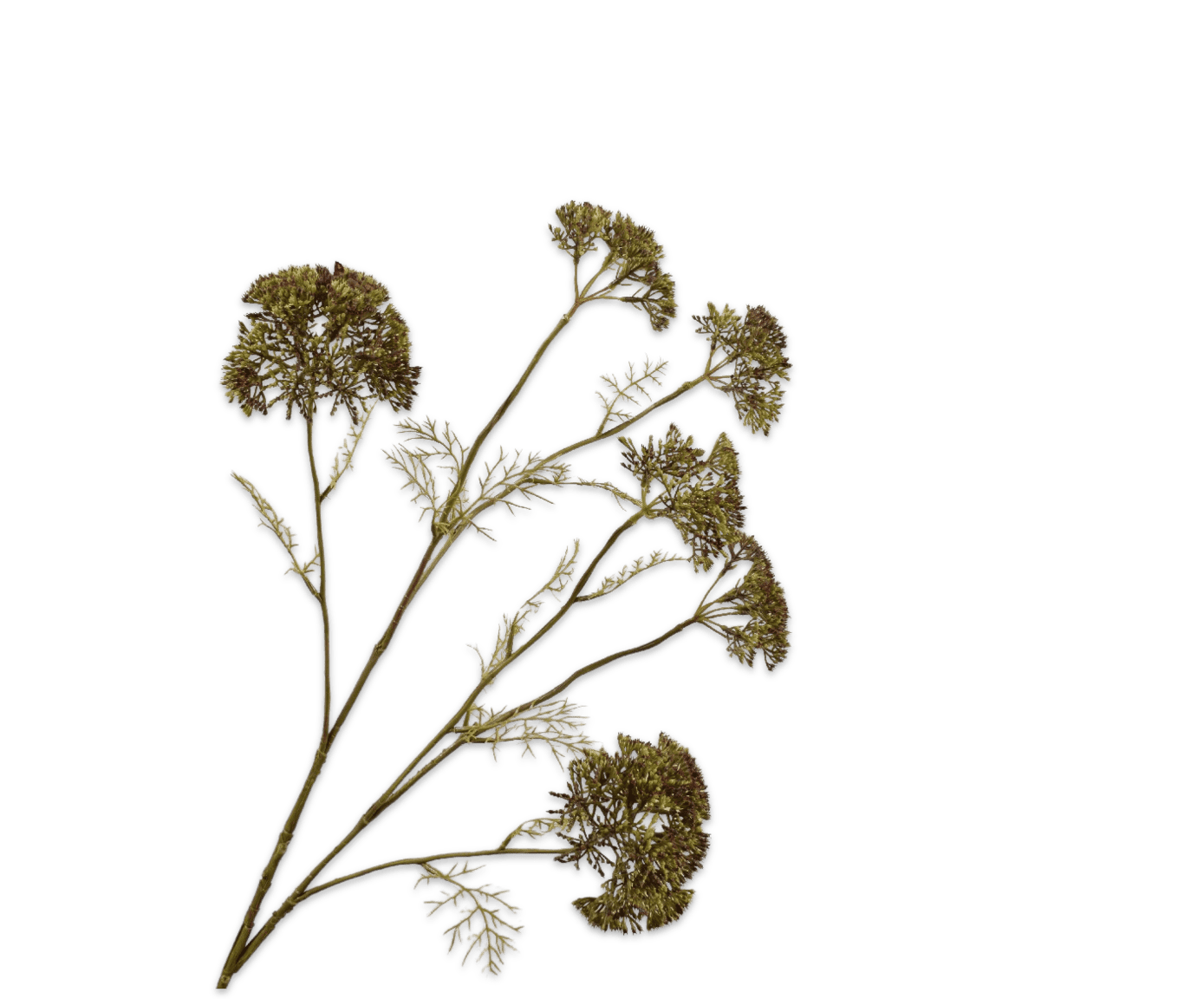De dille kunsttak in paars van Silk-ka is een opvallend decoratief element met een luchtige vorm en verfijnde bloemstructuur. Deze tak, geïnspireerd op de bloeiwijze van echte dille, bestaat uit fijne schermbloemen in een diepe paarse tint die elegant afsteken tegen de slanke groene steel. De open, ronde vorm zorgt voor lichtheid en ritme in boeketten of als solo-object in een hoge vaas. In de