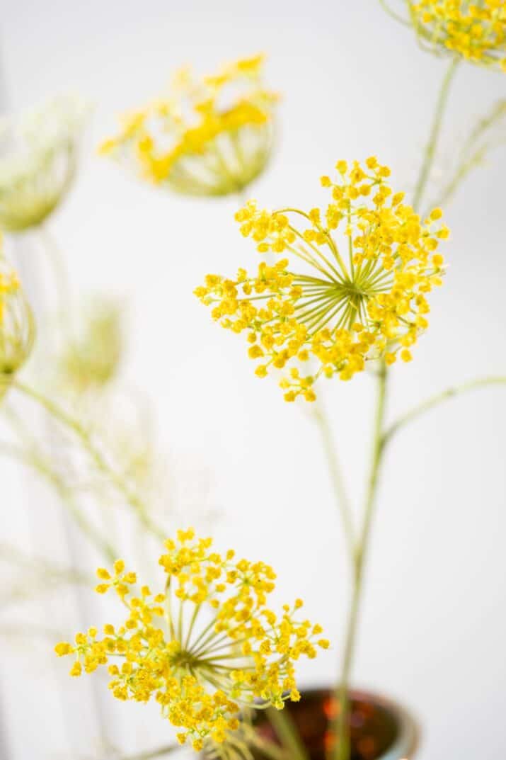 Stijltip: de dille tak combineert prachtig met vaaswerk in aardewerk, linnen accessoires en houtsoorten met een grove nerf. In een lichte ruimte versterkt hij het gevoel van zomer, in een donkerder interieur geeft hij juist een warme gloed. Gebruik hem als solist in een smalle vaas of laat hem speels uitsteken in een groter boeket met eucalyptus, grassen en bloesem.