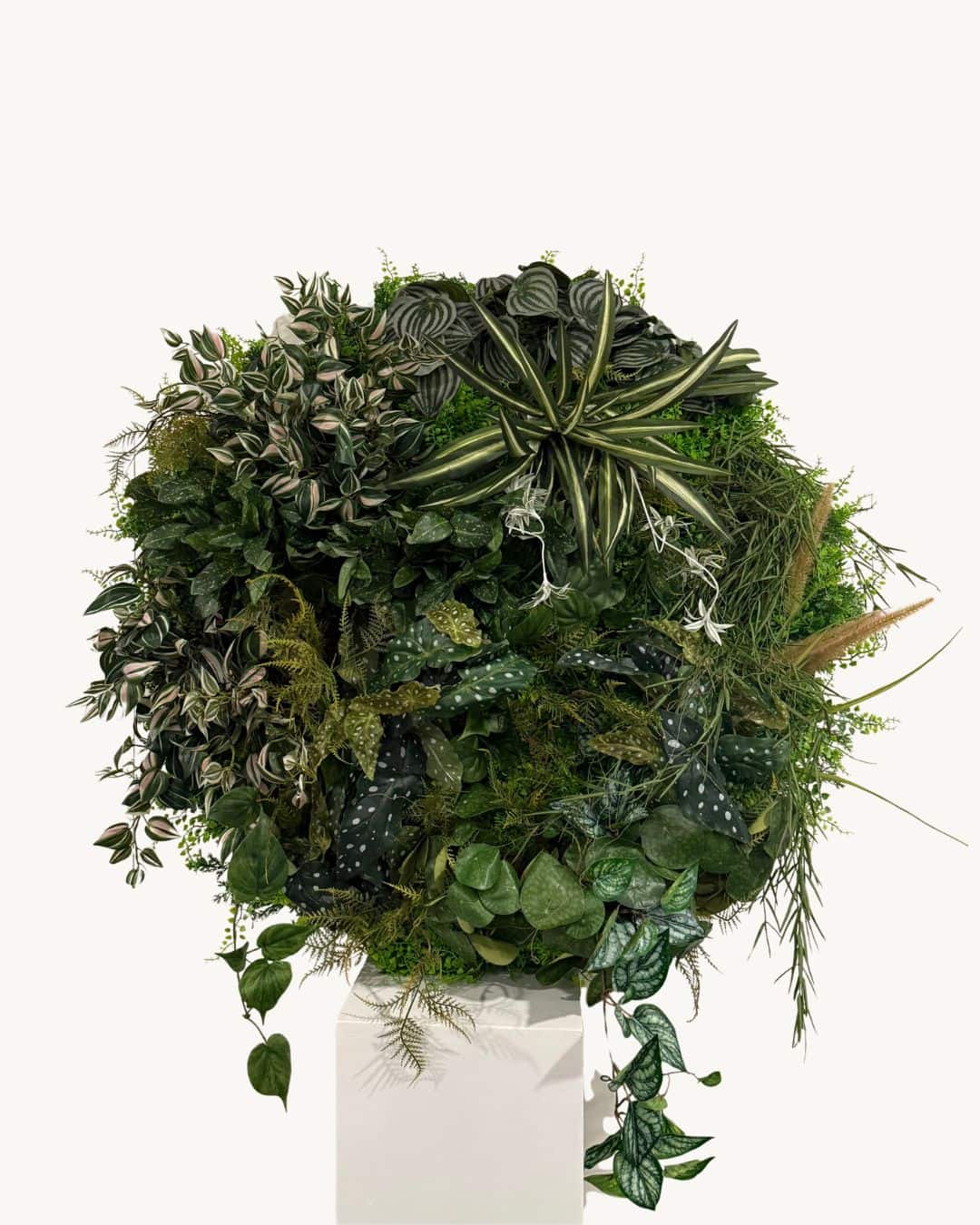 Net als alle kunstproducten van Silk-ka is deze greencircle volledig onderhoudsvrij. Je hoeft geen rekening te houden met licht, water of verzorging. De kleur blijft stabiel, de vorm behouden, en het geheel is volledig allergievriendelijk. Perfect dus voor grote ruimtes waar sfeer en gemak samen moeten gaan – denk aan hotellobby’s, ontvangstruimtes, stijlvolle woonkamers of representatieve kantoorinterieurs.