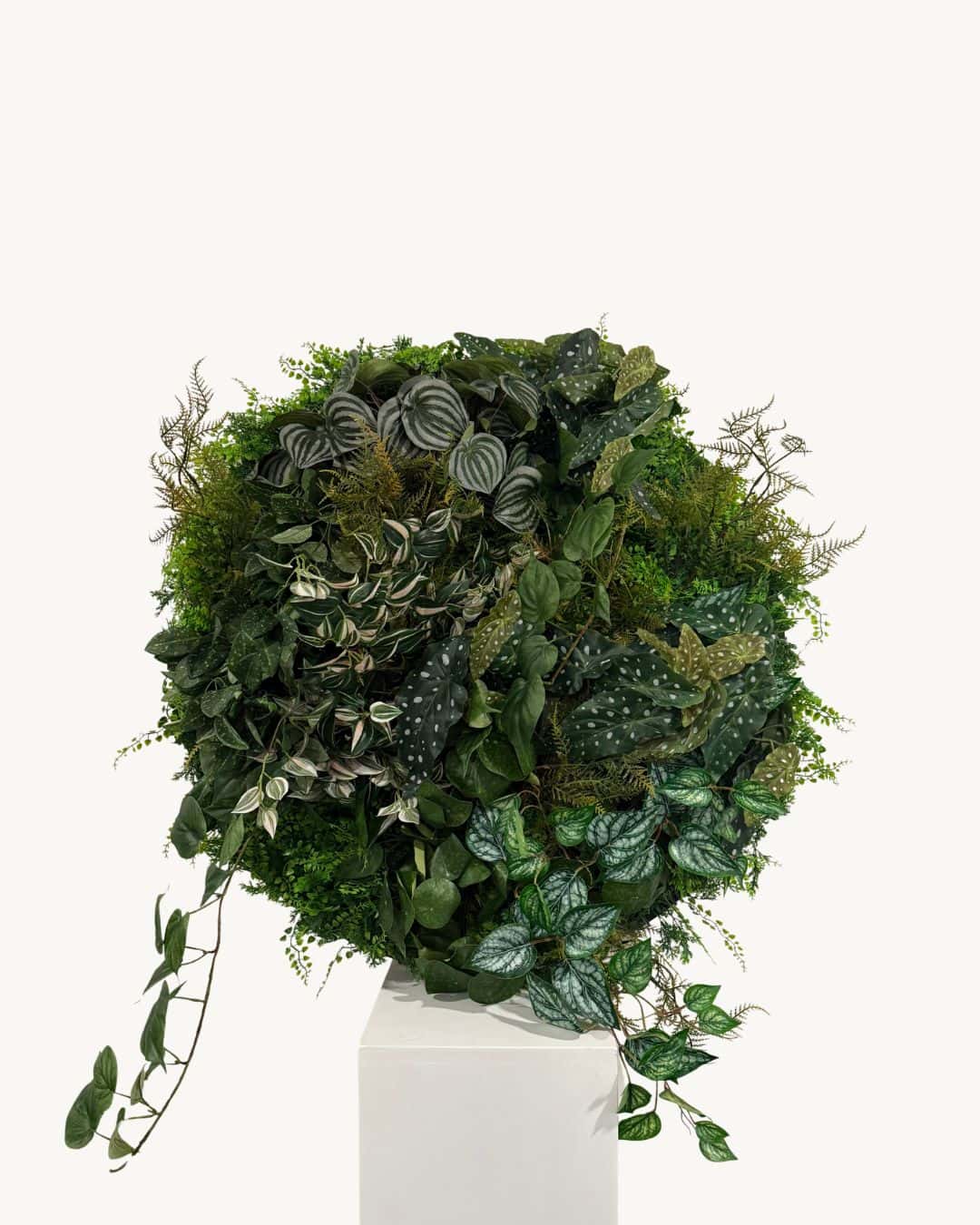 De royale diameter van 80 cm biedt veel mogelijkheden voor styling. Combineer deze greencircle met hangende elementen zoals de Philodendron garland 110 cm voor een verticale groene compositie, of plaats hem boven een dressoir in combinatie met een grote staande plant zoals de Pittosporum kunstboom 250 cm . Ook als seizoensdecoratie – aangekleed met linten of accessoires – blijft de basis elegant en stijlvol.