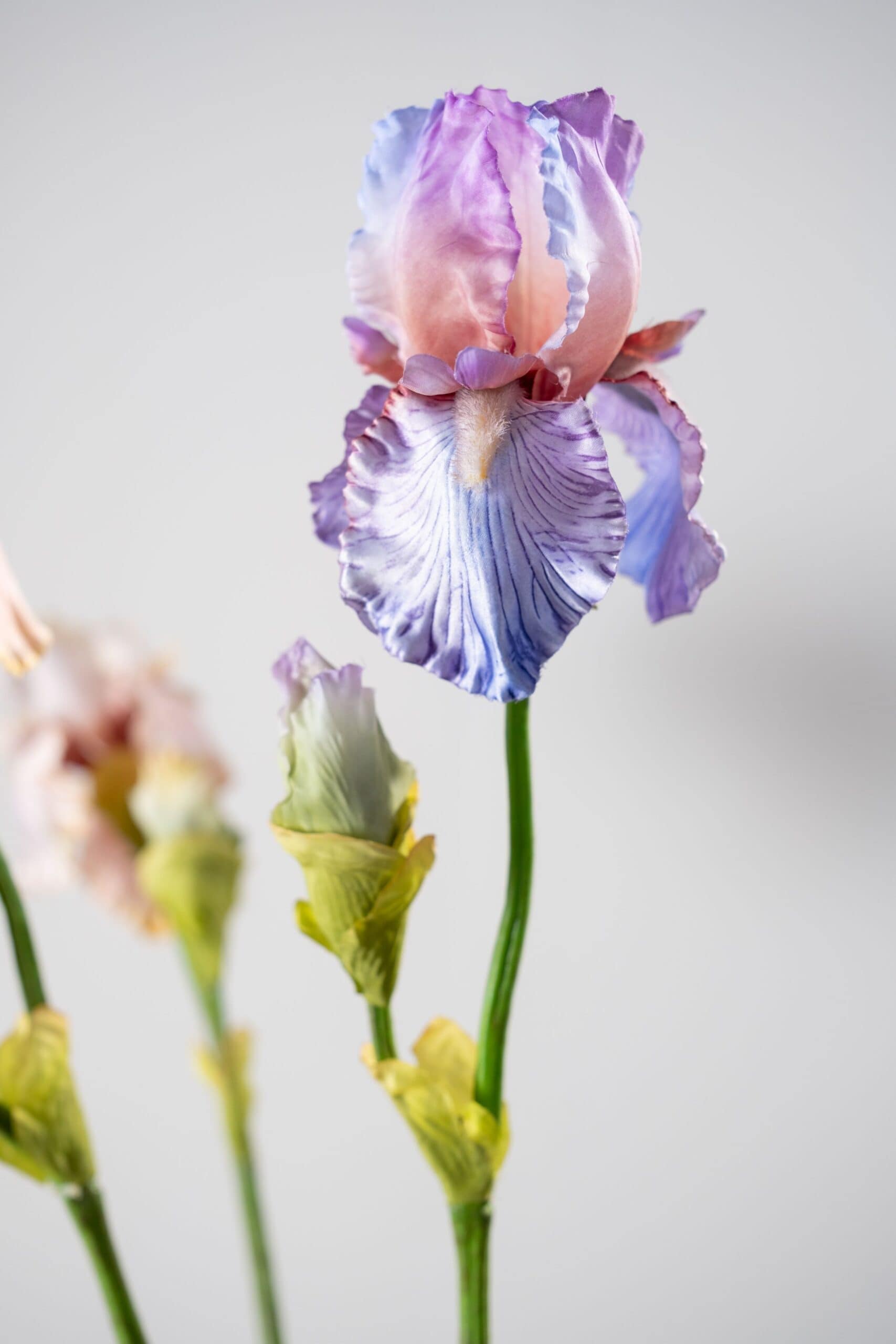 In combinatie met onze uitgebreide collectie kunstbloemen in aardetinten biedt de Iris prs/bl een krachtig kleuraccent. Ze geeft net dat beetje contrast dat een interieur spannend en gelaagd maakt. Of je haar nu solo plaatst in een glasvaas op de eettafel of verwerkt in een bloemstuk in de hal – de Iris blijft verrassen.