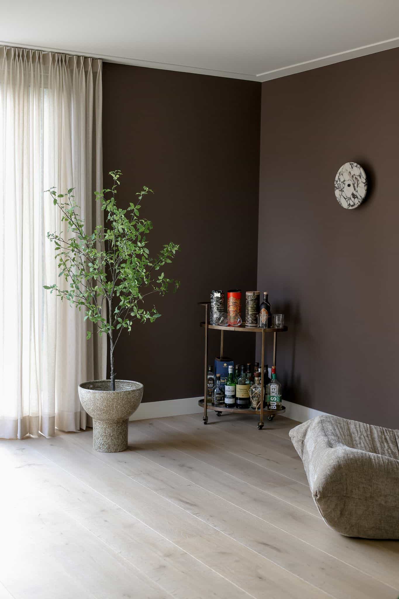 In een licht interieur versterkt de Pittosporum zijn frisse karakter, terwijl hij in een donkerder decor net een luchtige tegenhanger vormt. Combineer hem bijvoorbeeld met een kleinere Pittosporum kunstboom 250cm in een andere hoek van dezelfde ruimte voor een speels hoogteverschil.