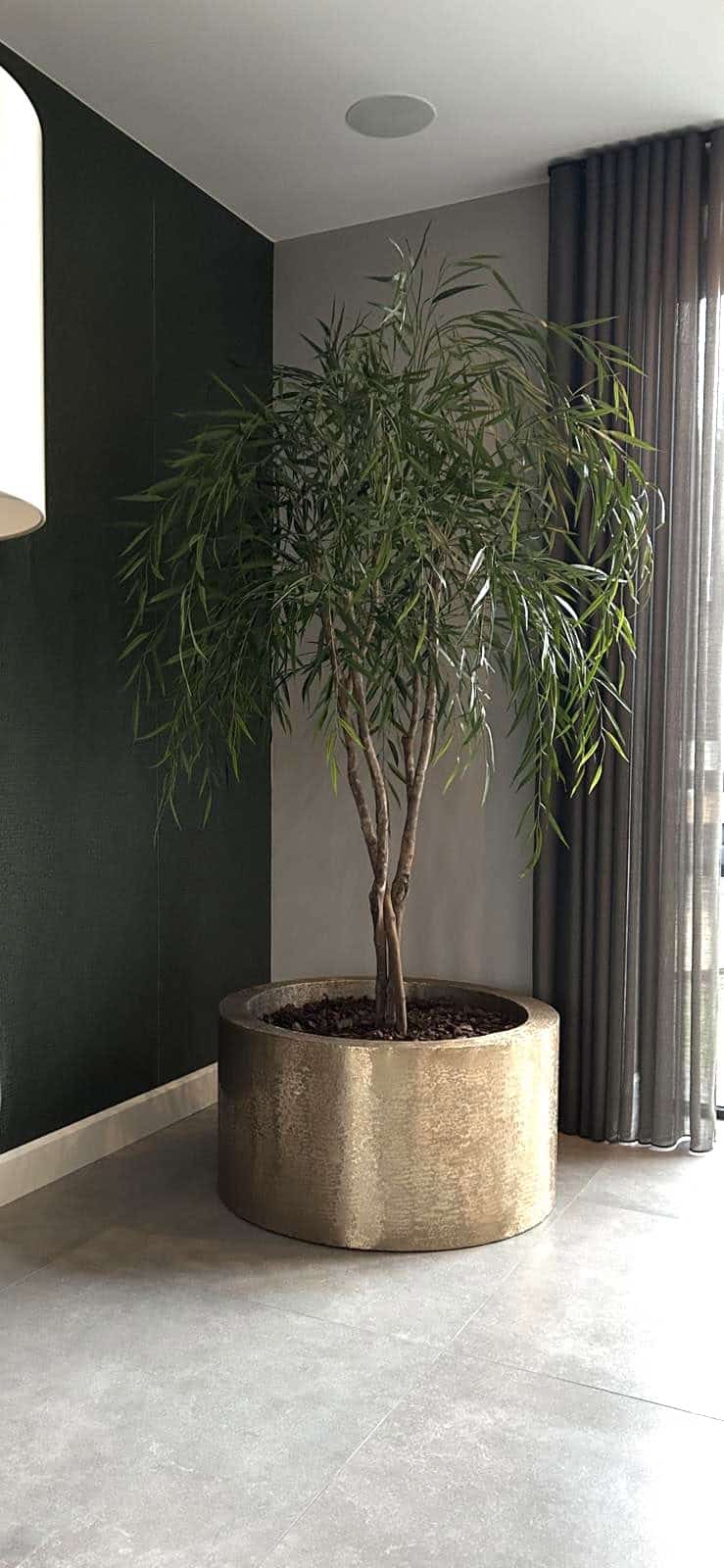 Deze bomen zijn ideaal voor ruimtes waar een levend groen element gewenst is, maar waar echte beplanting niet praktisch is. Ze passen perfect in een entree, naast een bank, bij een open trap of als verbindend element tussen binnen en buiten. Door te werken met grote potten in rustige materialen zoals beton, keramiek of hout, ontstaat een evenwichtige en krachtige uitstraling.