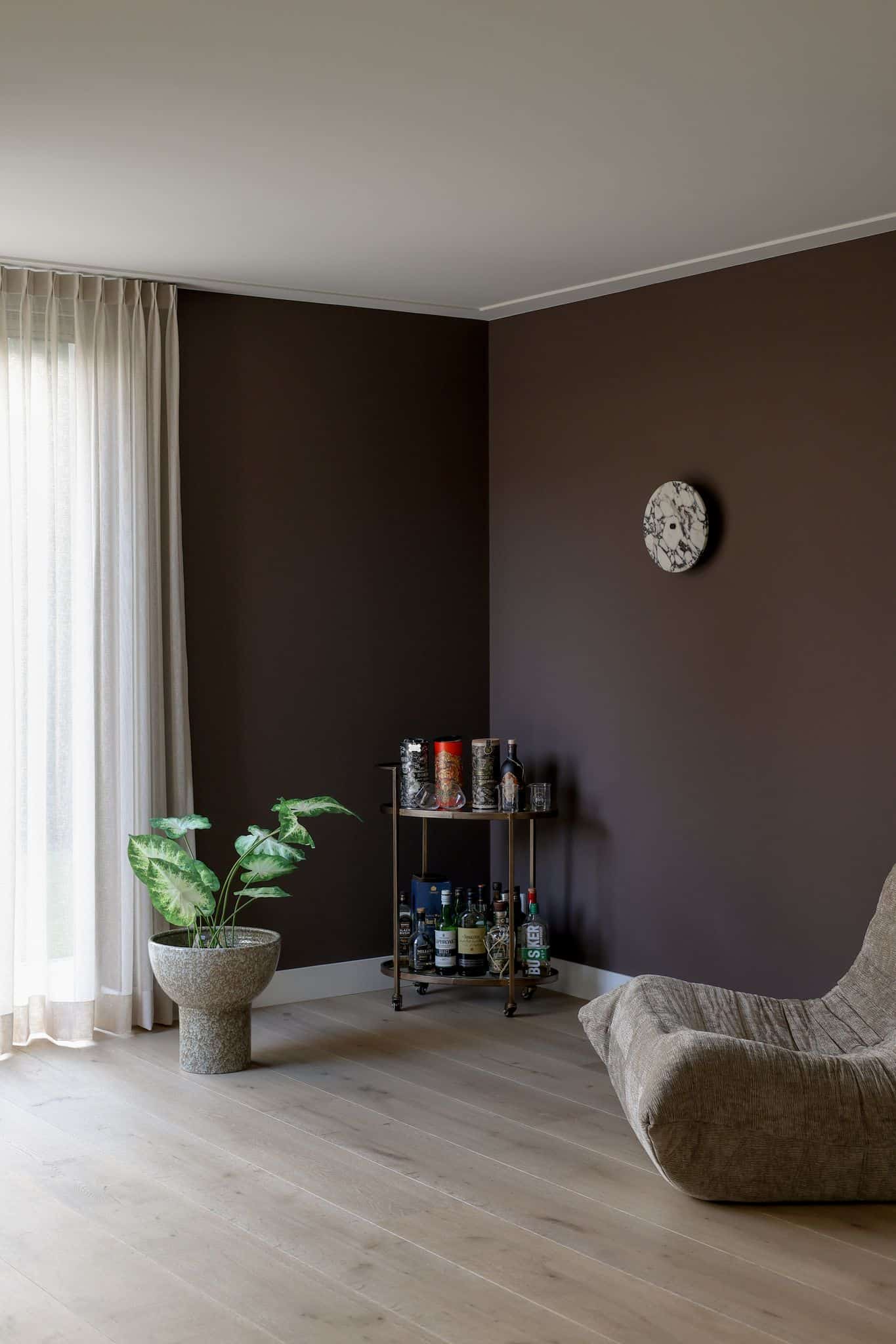 Wanneer je de plant combineert met een keramische pot in aardetinten ontstaat een rustige basis die stabiliteit uitstraalt. In een strakkere omgeving werkt een matte pot in donkere tinten juist goed omdat het contrast zorgt voor een duidelijke focus op de bladtextuur. Een lichte pot geeft een open en frisse uitstraling, ideaal in ruimtes met veel licht of tegenover kunstwerken en wanden met structuur.