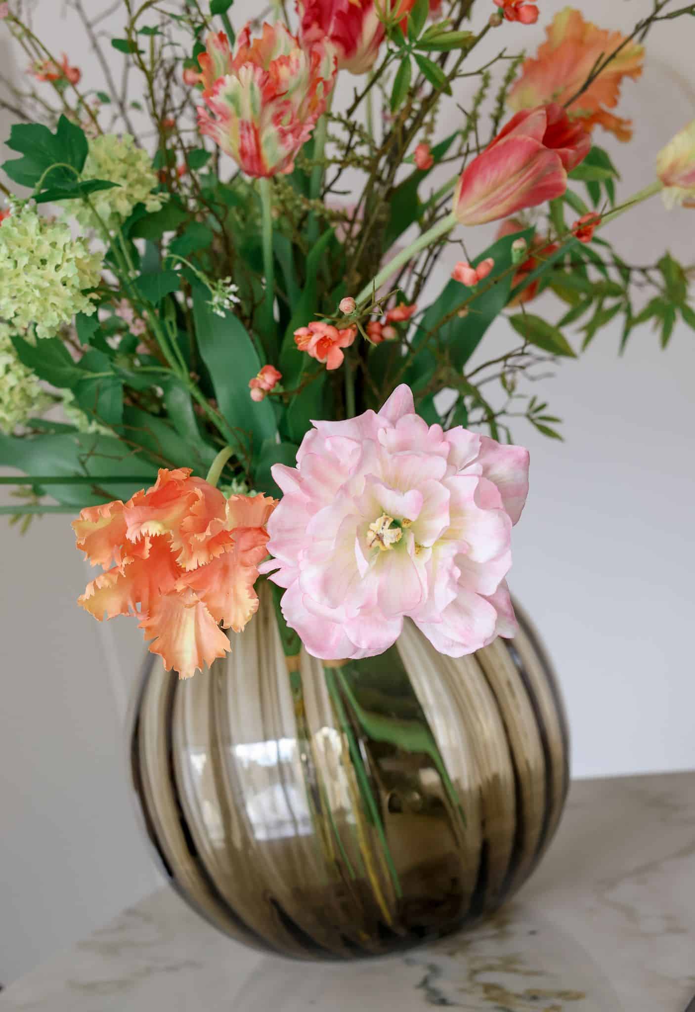 Deze lichtroze kunsttulp combineert prachtig met andere Silk‑ka bloemen zoals crèmekleurige rozen, witte ranonkels of pastelkleurige anemonen. Ze vormt ook een mooie combinatie met groene kunstplanten zoals onze pittosporum kunstboom, die zorgt voor volume en frisheid in een grotere setting. Zo stel je moeiteloos een boeket samen dat past bij jouw stijl.