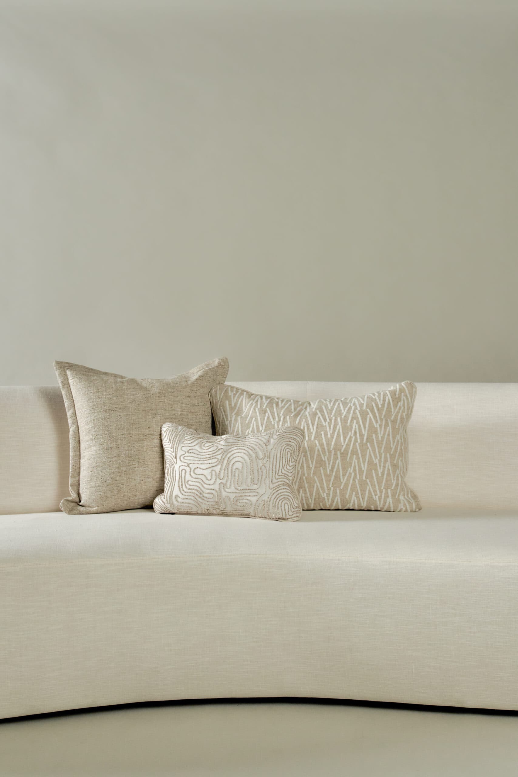 Ook buiten maken de kussens indruk. Als stijlvolle buitenkussens zijn ze ideaal voor een luxe loungehoek aan het zwembad, een overdekt terras of een patio met natuurlijke materialen. De verfijnde uitstraling zorgt voor een harmonieuze overgang tussen binnen en buiten – perfect voor een villa met een high-end look.
