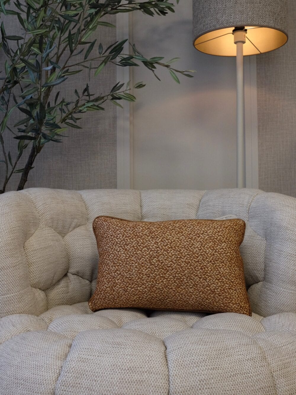 Ook buiten maken de kussens indruk. Als stijlvolle buitenkussens zijn ze ideaal voor een luxe loungehoek aan het zwembad, een overdekt terras of een patio met natuurlijke materialen. De verfijnde uitstraling zorgt voor een harmonieuze overgang tussen binnen en buiten – perfect voor een villa met een high-end look.