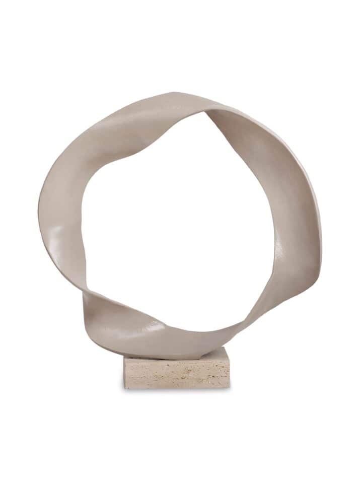 Ornament Uppsala Sand Travertine voegt een artistiek element toe aan de ruimte. Het object combineert de warme tint van zand met de textuur van travertine. Deze samenstelling zorgt voor een uitstraling die tijdloos en krachtig is. Waar meubels en potten de basis vormen, brengt dit ornament verfijning en karakter in het geheel.