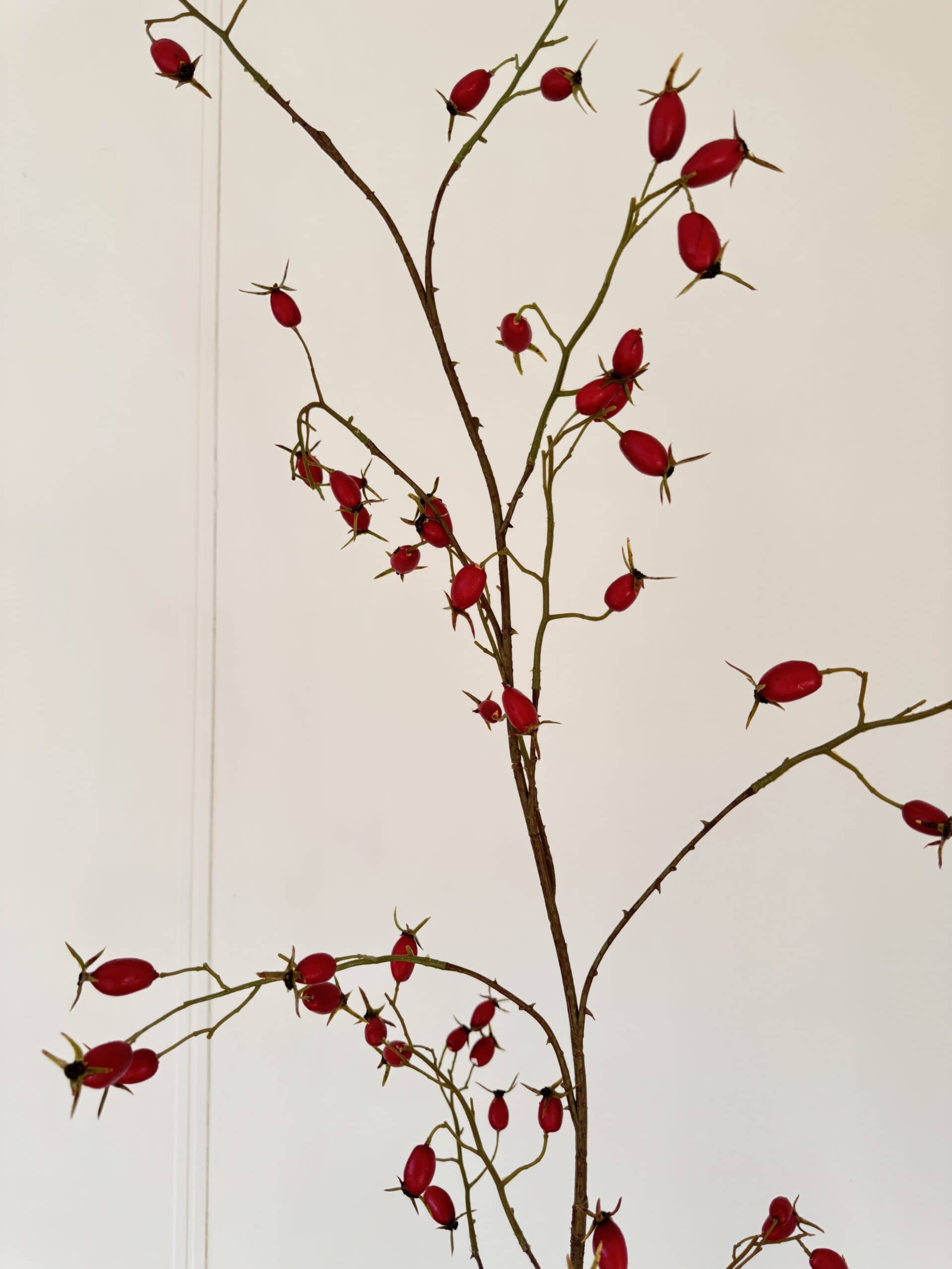 De ROZENBOTTEL TAK ROOD 168 cm Silk-ka is een expressief natuuraccent dat sfeer en karakter brengt in elk interieur. Met zijn indrukwekkende lengte van 168 cm, diep rode bottels en elegante vertakking geeft deze zijden kunsttak een krachtig seizoensgebonden effect, zonder concessies te doen aan duurzaamheid of onderhoudsgemak. Ontworpen door het gerenommeerde merk Silk-ka, belichaamt deze tak de perfecte balans tussen vakmanschap en verfijnde esthetiek – een stijlvol element voor wie houdt van een tijdloos en sfeervol interieur.