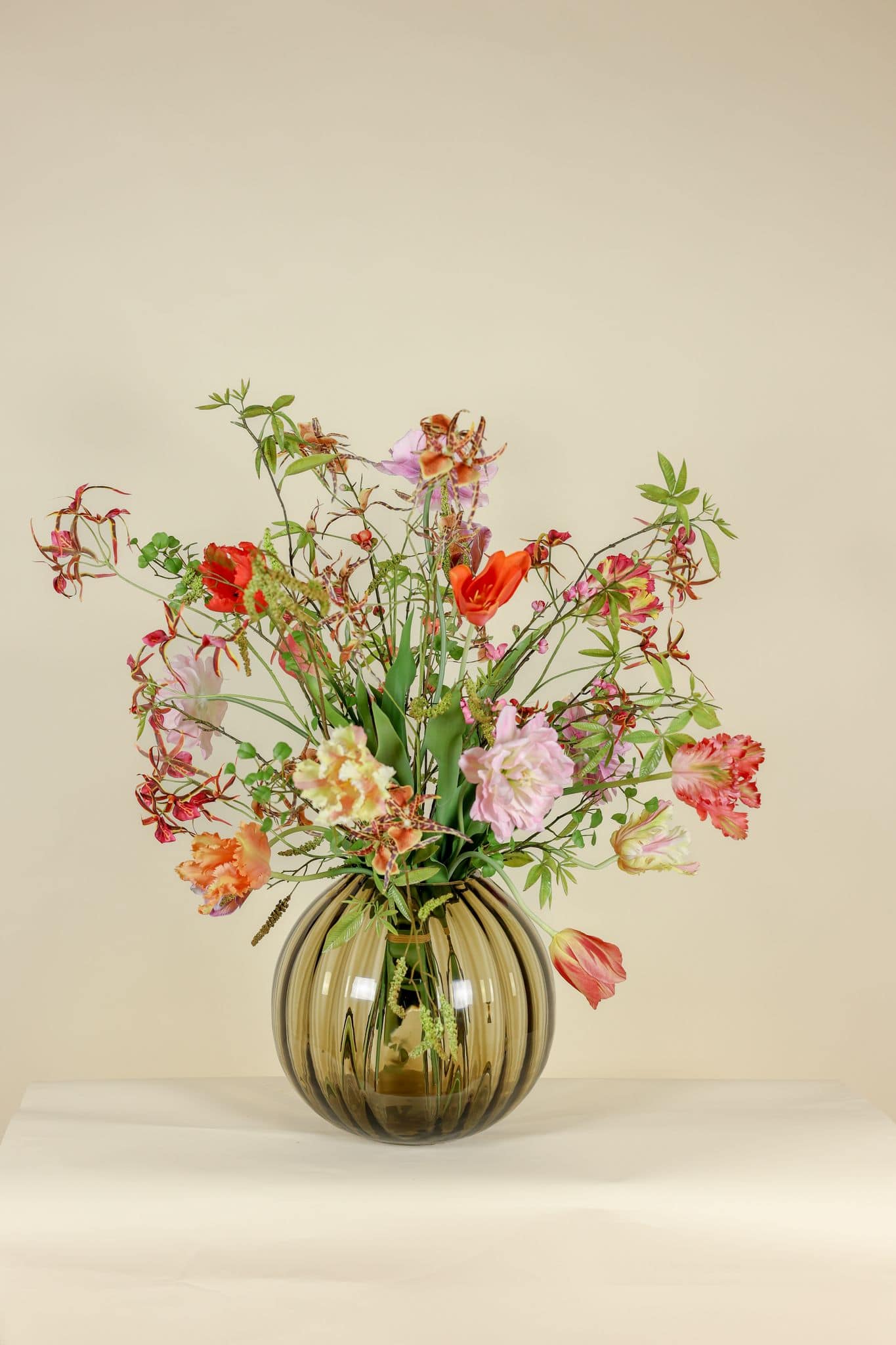 De elegante paarstinten zorgen voor rust en diepte in elk interieur. In lichte ruimtes vormt het boeket een chique accent, in donkere interieurs brengt het net die balans en verfijning die sfeer compleet maakt. Voor variatie in stijl en kleur kun je ook de kunsttulpen collectie bekijken.