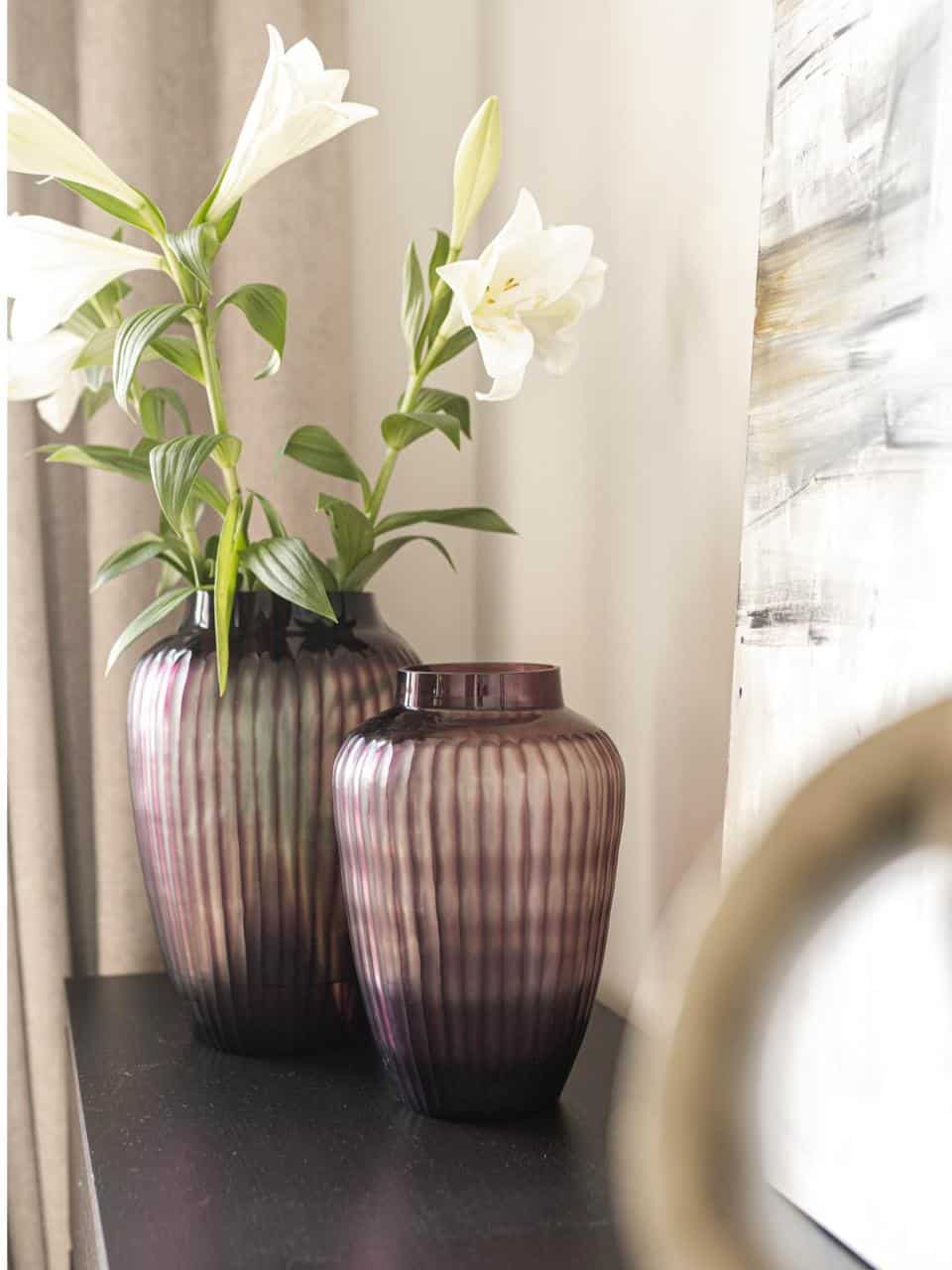 In de showroom van Exclusief Ingericht ervaar je hoe de Ameterine aubergine H31 cm tot leven komt binnen verschillende interieurstijlen. De zorgvuldig gestylde opstellingen laten zien hoe deze vaas functioneert binnen een groter geheel van vormen, texturen en lichtinvallen. Of je nu houdt van moderne eenvoud of een meer gelaagd interieurbeeld: in de showroom zie je direct hoe deze vaas zich aanpast aan jouw wensen.