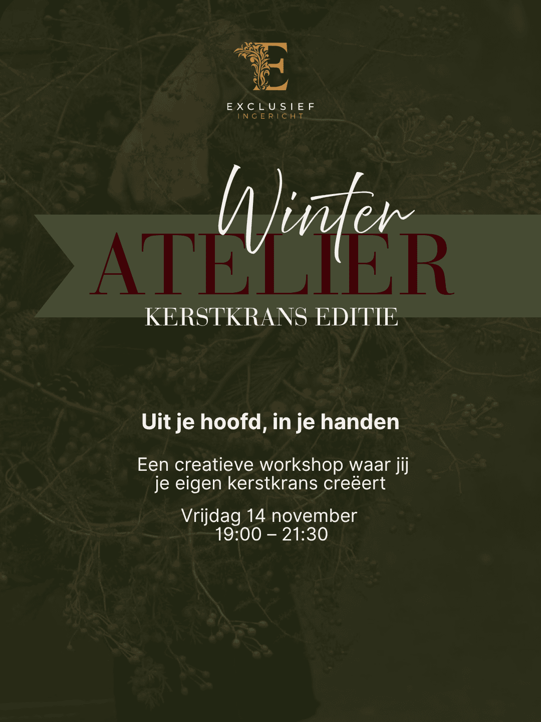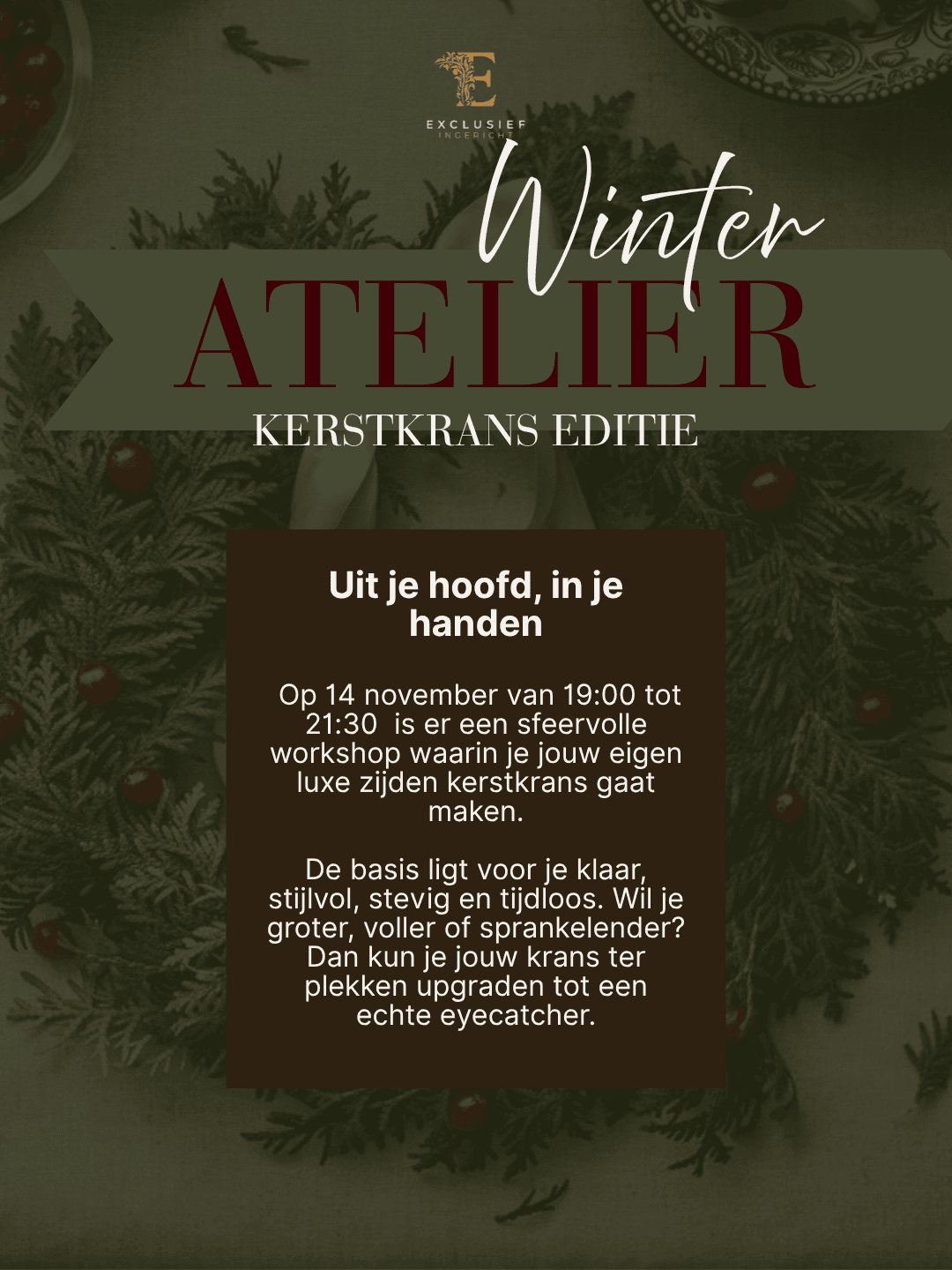 Tijdens deze exclusieve workshop maken jullie stap voor stap een zijden kerstkrans.
