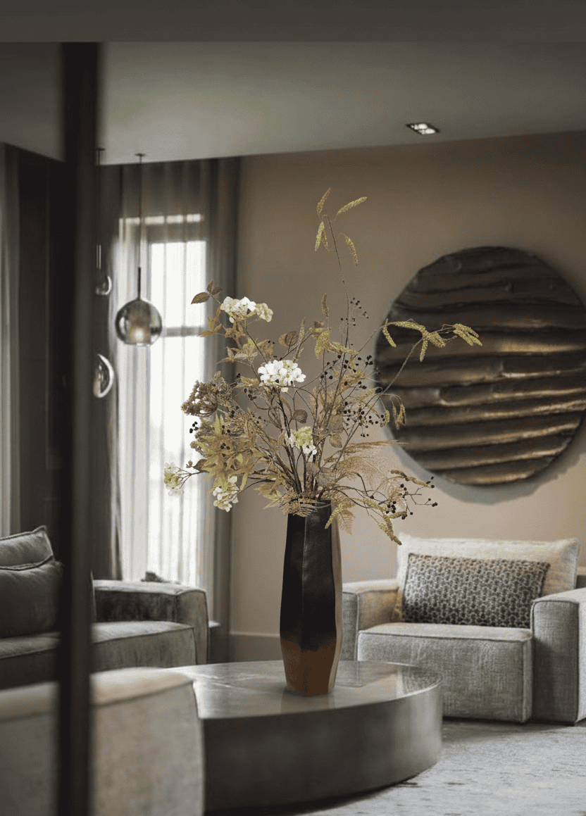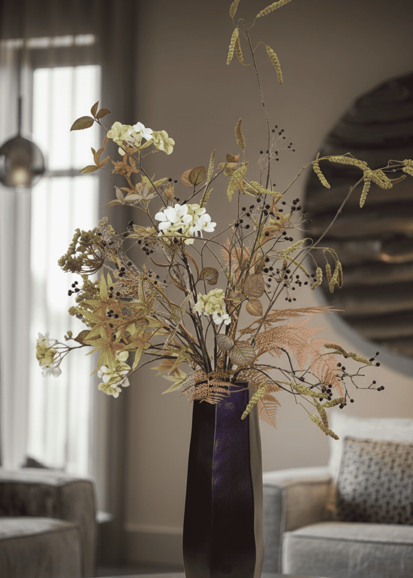 Heb je een werkkamer of een donkere hoek die iets mist? Dit boeket voegt zonder moeite sfeer toe. In een ontvangsthal of hotelkamer zorgt het voor een gevoel van luxe en zorgvuldige inrichting – precies het gevoel dat Silk-ka nastreeft, en Exclusief Ingericht tot leven brengt.