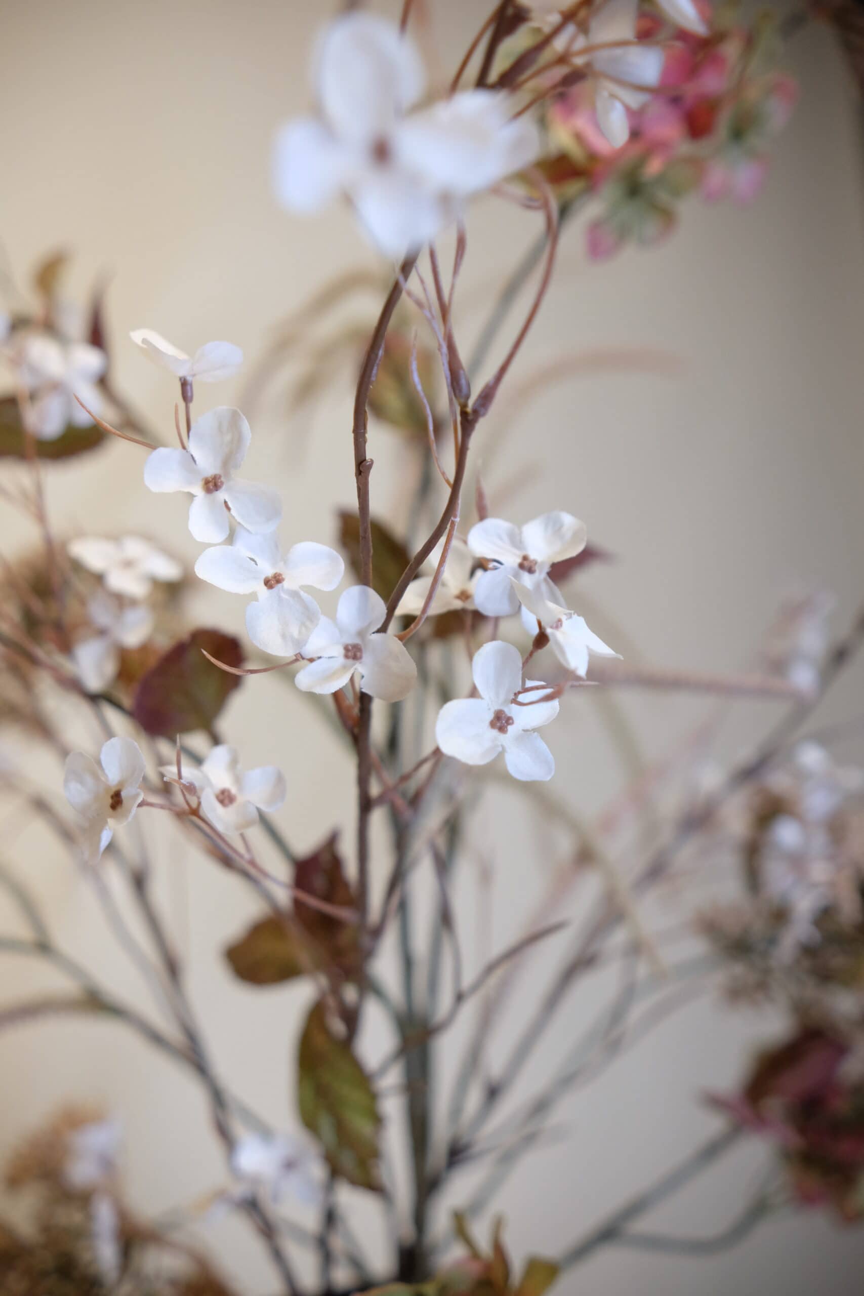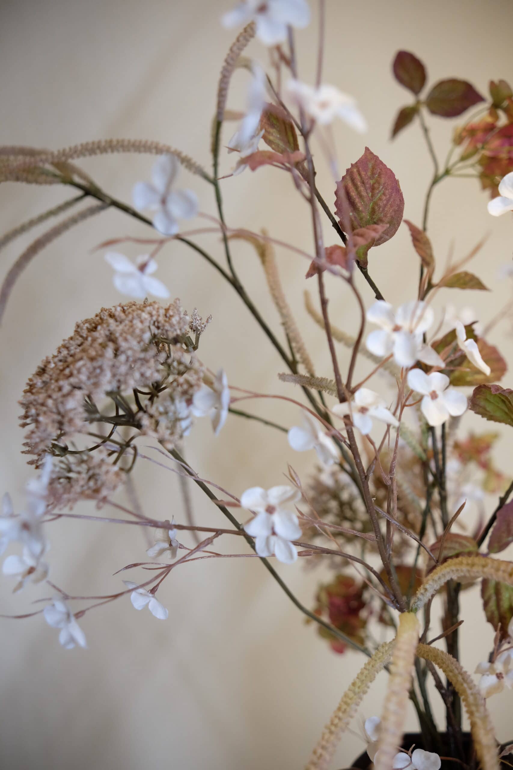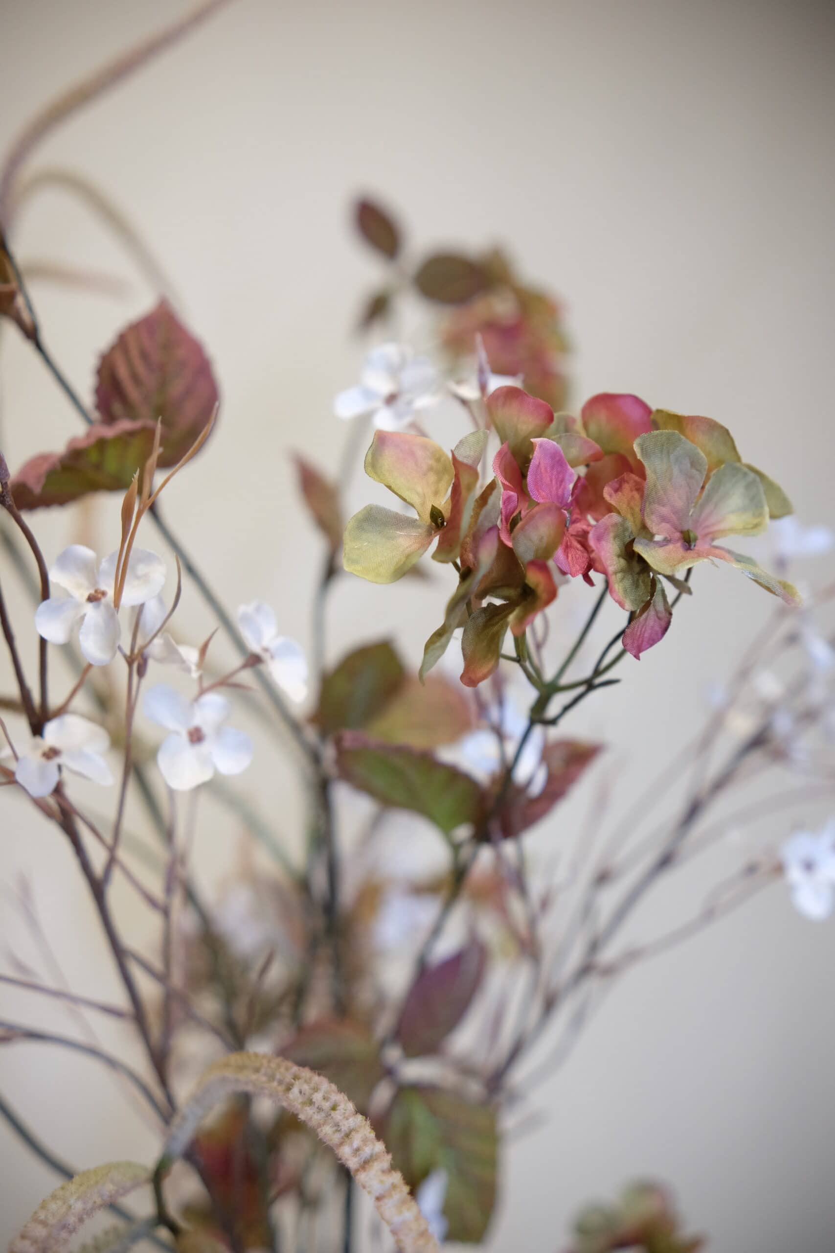 In je interieur brengt dit boeket rust. Denk aan een lichte woonkamer, waar dit boeket de zachte overgang vormt tussen neutrale kleuren en warme accenten. Of aan een slaapkamer, waar het op een dressoir net dat vleugje verfijning toevoegt. Dankzij het allergievriendelijke karakter van zijden bloemen heb je geen last van geur of pollen. Dat maakt het boeket perfect voor gebruik in elke ruimte, ook in hotels, gastenkamers en zorgomgevingen.
