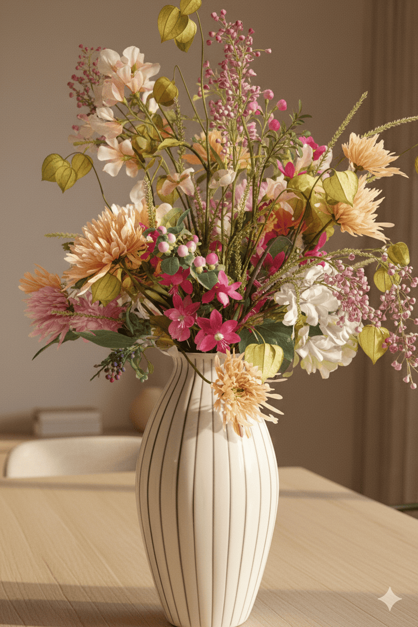 Een zijden bloemen boeket combineert natuurlijke uitstraling met onderhoudsvrij gemak. Het Cozy Pastel Boeket blijft altijd fris en in vorm, zonder water of verzorging.