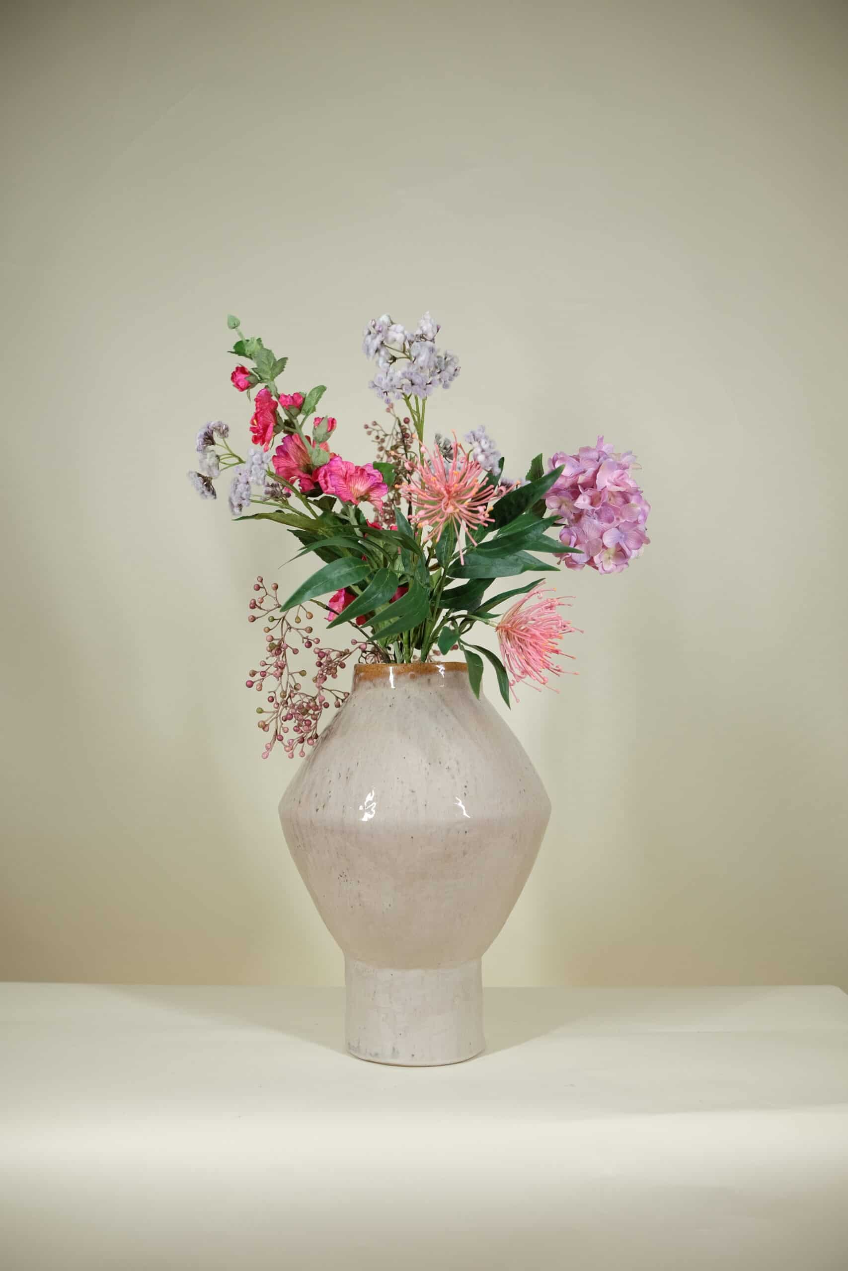 Het Zijden Kunstbloemen Boeket Floral Fantasy is een expressieve en verfijnde compositie die direct leven brengt in je interieur. Dit luxe zijden boeket is met zorg samengesteld en speelt met vorm, kleur en ritme. Het resultaat is een arrangement dat energie uitstraalt, zonder de harmonie van de ruimte te verstoren. Het boeket voelt als een droomwereld van bloemen – altijd in bloei, altijd in balans.