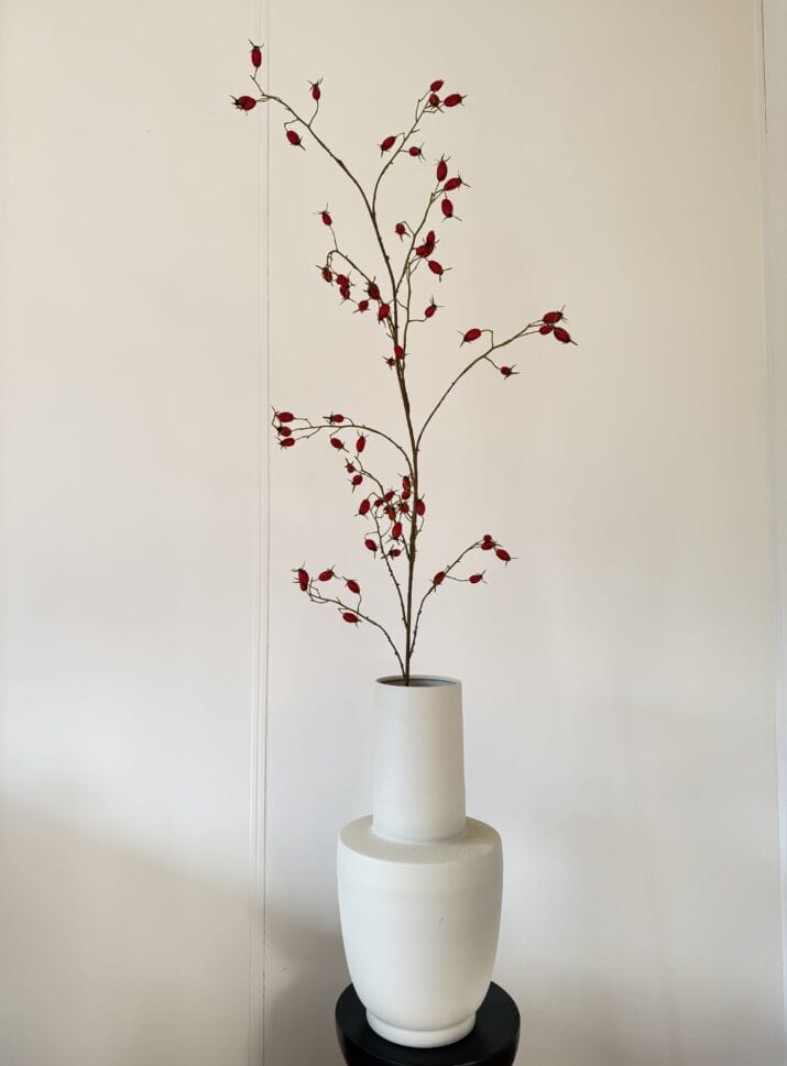 In de winkel van Exclusief Ingericht ontdek je de kracht van echte beleving. Hier kun je de ROZENBOTTEL TAK ROOD 168 cm fysiek bewonderen, combineren met andere zijden bloemen of kunsttakken, en direct ervaren hoe hij tot leven komt in verschillende opstellingen. De winkel is ingericht om inspiratie te geven – met sfeervolle combinaties, luxe vazen en persoonlijk advies van ervaren stylisten.