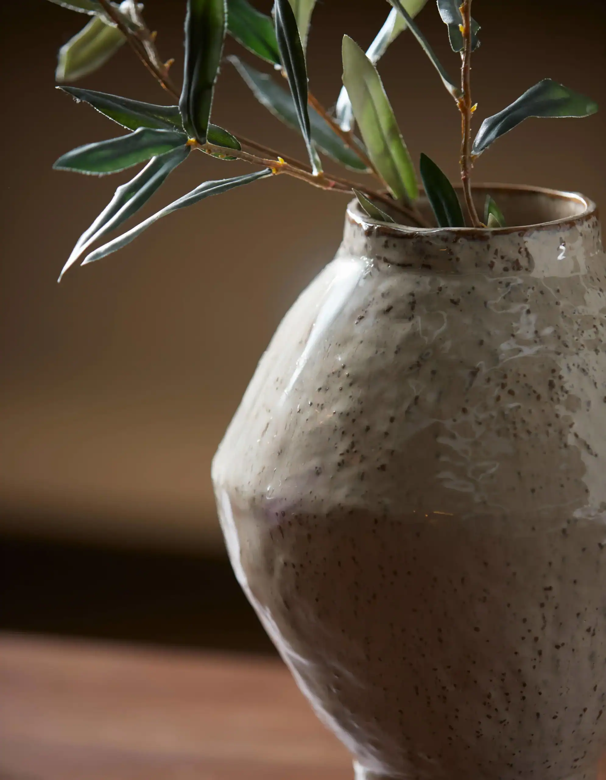 De taupekleurige afwerking geeft een warme, aardse indruk zonder te overheersen. Hierdoor laat deze vaas zich op natuurlijke wijze combineren met zowel warme houttinten als koele steenelementen. Zet de vaas op een prominente plek zoals een bijzettafel, dressoir of vensterbank en je brengt diepte en balans in je woonomgeving. Door zijn tijdloze uitstraling blijft deze vaas relevant in elk seizoen en in uiteenlopende interieurstijlen — van modern en industrieel tot landelijk en klassiek.