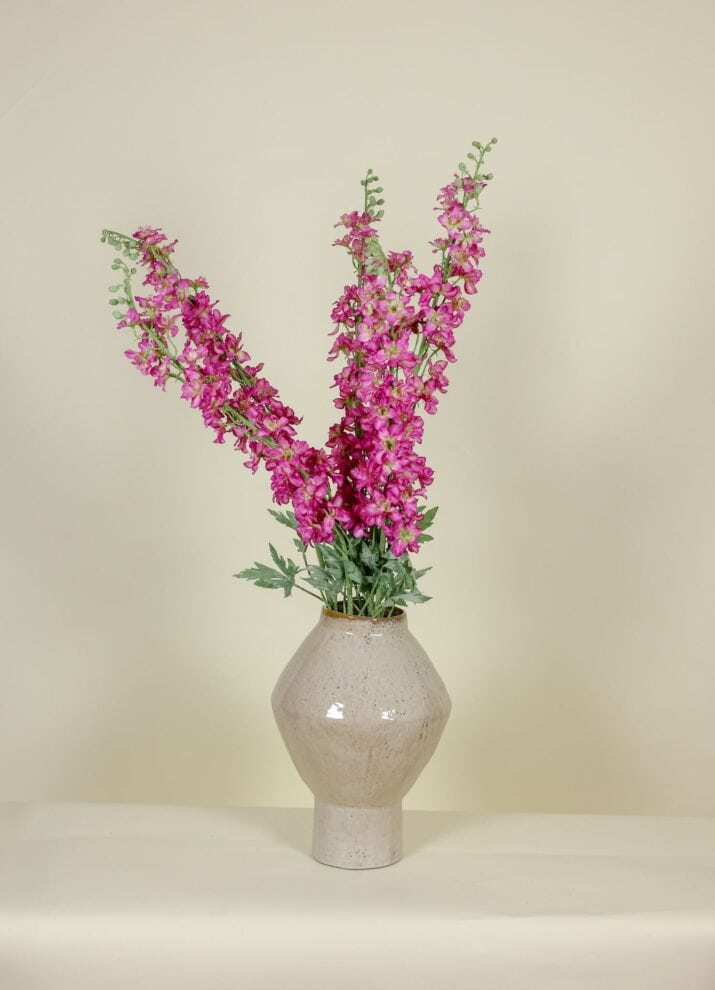 Exclusief Ingericht is specialist in hoogwaardige zijden kunstbloemen, kunsttakken en kunstplanten. De collectie wordt zorgvuldig samengesteld en handgeselecteerd op realisme, kleurintensiteit en kwaliteit. Het zijden boeket Delphinium XL roze maakt deel uit van een exclusieve premium collectie die zowel online als in de ruime winkel kan worden bewonderd.